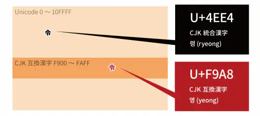 而考虑到字源分离原则,韩语读音是**영(yeong)的「令」**也被 Unicode 作为中日韩兼容表意文字而采用。